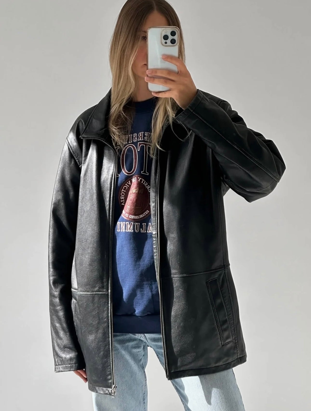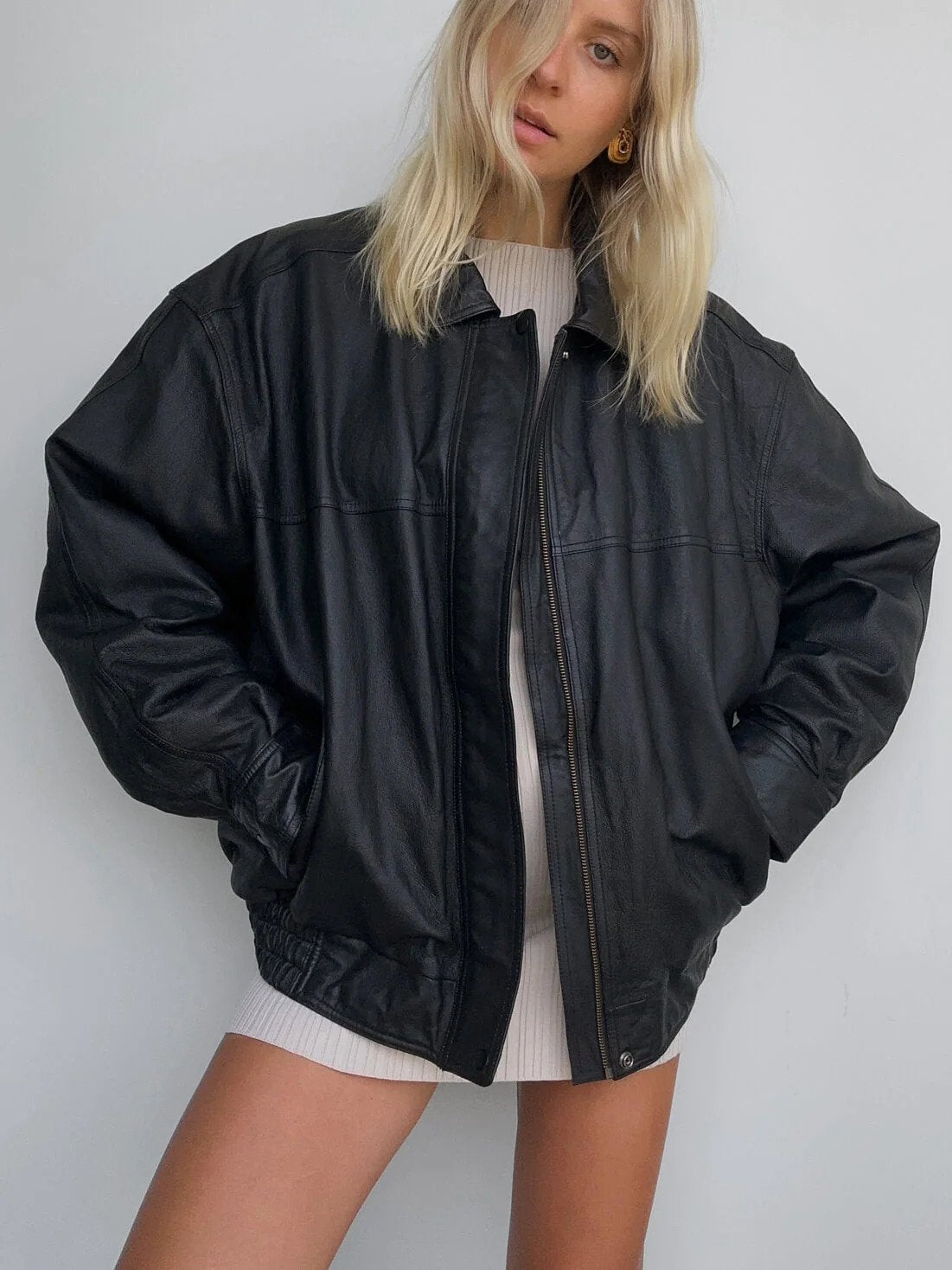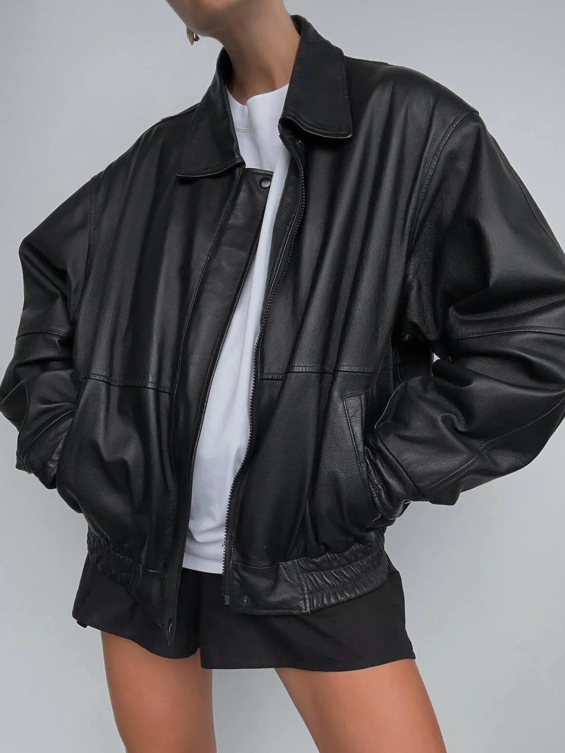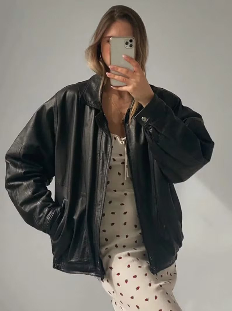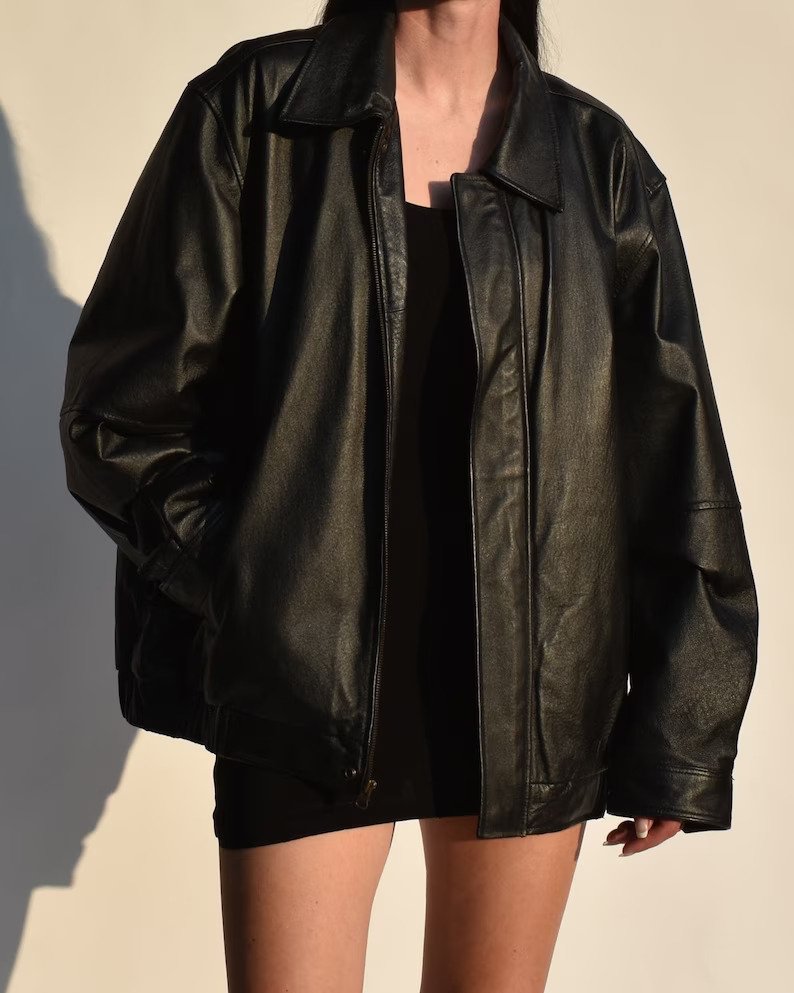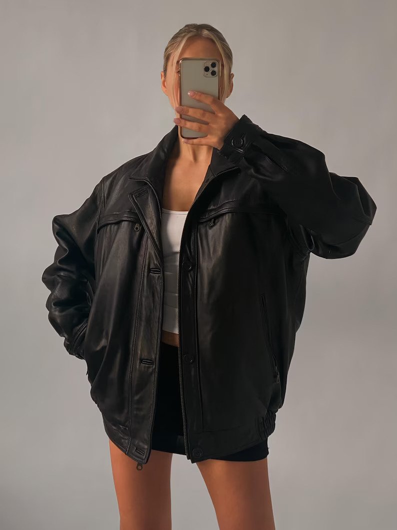 Women's Vintage Oversized black leather jacket
