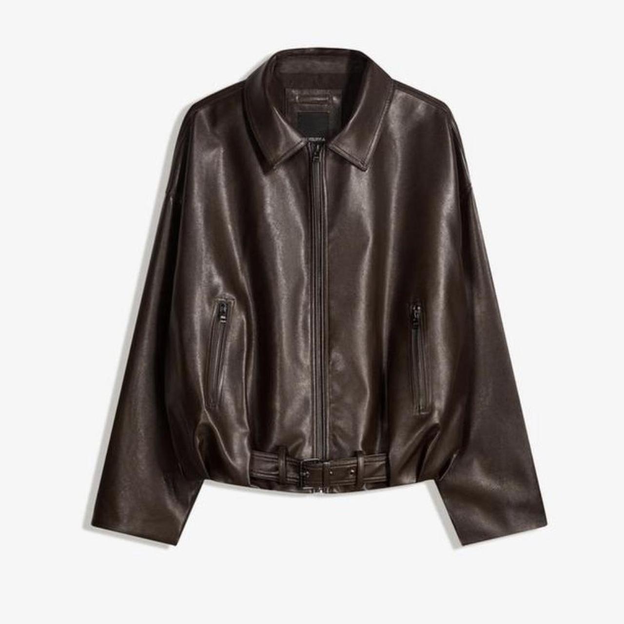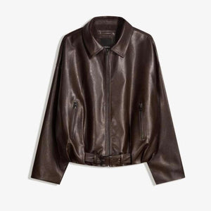 Step up your style with this oversized brown leather bomber jacket, designed for a bold, relaxed, and effortlessly cool look. Crafted with a smooth leather finish, this jacket features a baggy silhouette, full zip closure, and an adjustable belt that lets you customize the fit. The dropped shoulders and roomy sleeves add to its modern streetwear vibe, while the secure side pockets keep your essentials close.
