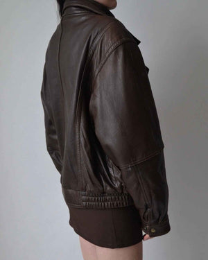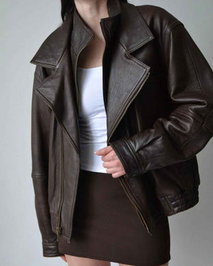 Women’s Vintage Brown Leather Bomber Jacket –